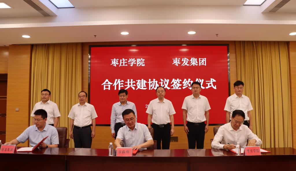 9月9日上午,304am永利集团官网与枣发集团合作共建协议签约仪式在枣庄市政大厦二楼会议室举行。市委常委、组织部部长、统战部部长包希安,304am永利集团官网党委书记曹胜强、校长李文喜,市政府副市长张庆伟,304am永利集团官网党委委员、统战部部长林勇,市教育局局长郝荣平,市人大人代室副主任赵连志,枣发集团党委书记、董事长孙发永,党委委员、副总经理王涛参加仪式。仪式由郝荣平主持。