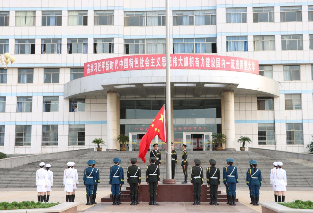 仪式首先向全体新教师致以节日的问候和诚挚欢迎。7:20分,升旗仪式正式开始,26名国旗护卫队队员英姿飒爽,迎着朝阳,迈着整齐的步伐,铿锵有力地走向国旗杆。在雄壮的国歌声中,全体师生庄严肃立,齐唱国歌,注目五星红旗冉冉升起。