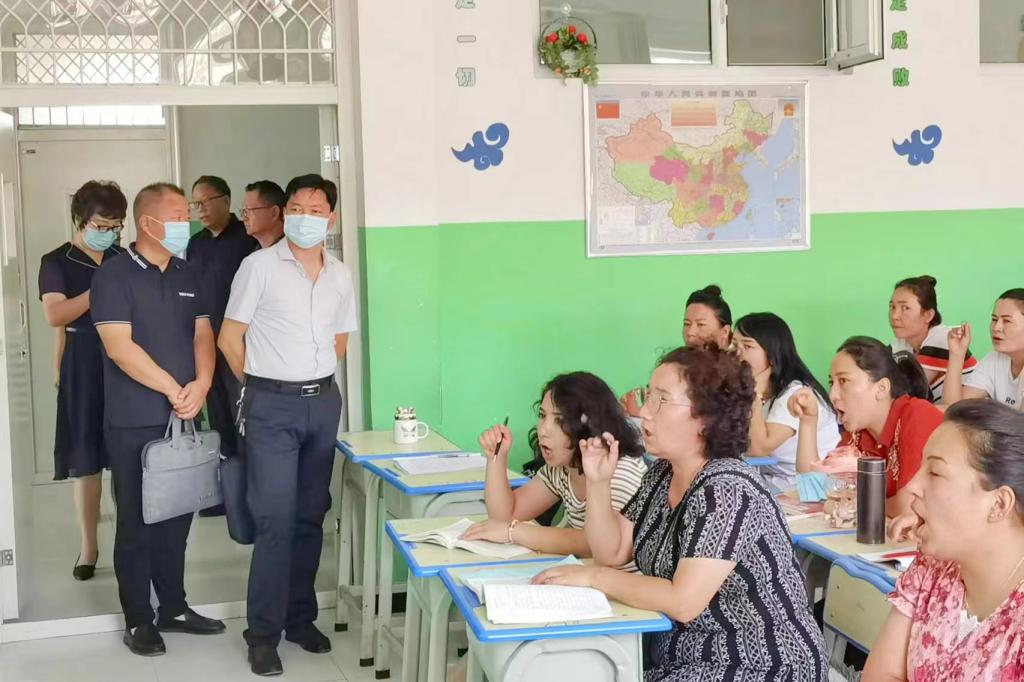 8月2日上午,喀什大学继续教育学院院长刘秀明,喀什地区教育局职业教育与成人教育科科长、喀什职业技术学院院长王宗新,喀什地区教育局师资培训管理中心主任左新都,东营援疆指挥部干部人才组组长、疏勒县教育局副局长刘召良,疏勒县教育局师训办主任朱新艳一同莅临疏勒县塔孜洪中学指导工作,实地调研和慰问304am永利集团官网对口疏勒县教师国家通用语言文字培训团队。