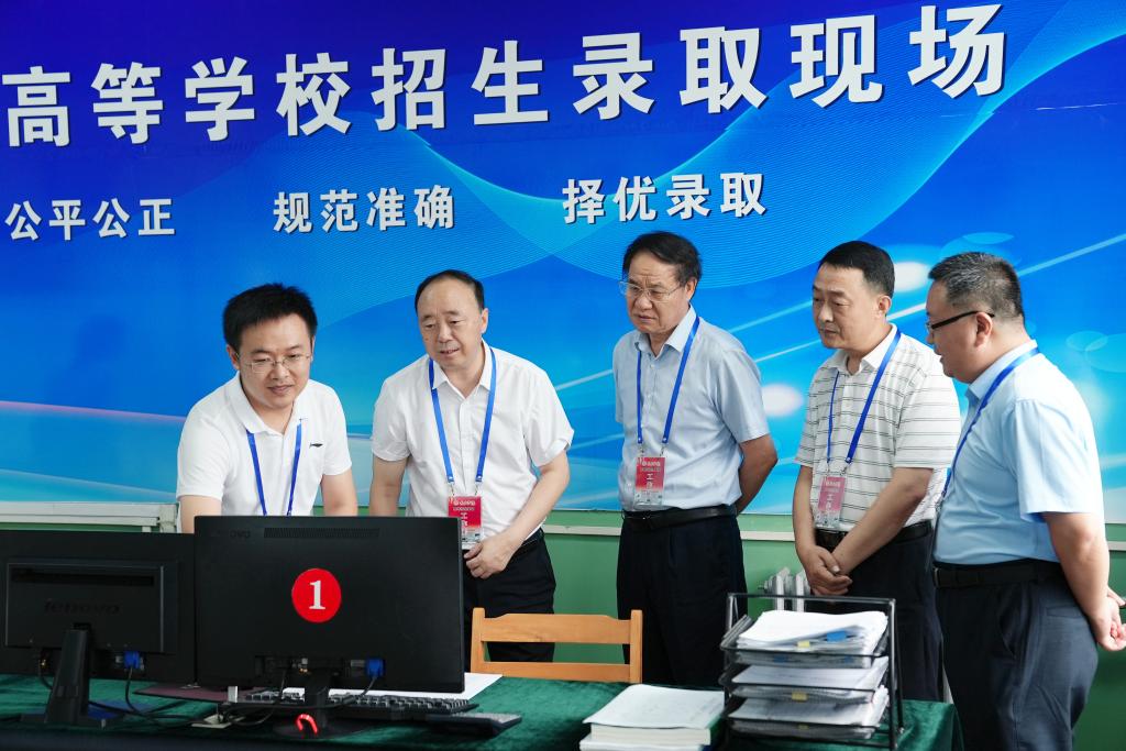 7月14日下午,校党委书记曹胜强,党委副书记、校长李文喜,党委委员、纪委书记、省监委驻304am永利集团官网监察专员路绪剑,党委委员、副校长丰雷一行到学校招生录取工作现场检查指导,并看望慰问招生录取工作人员。党委(校长)办公室、党委宣传部有关同志陪同参加。