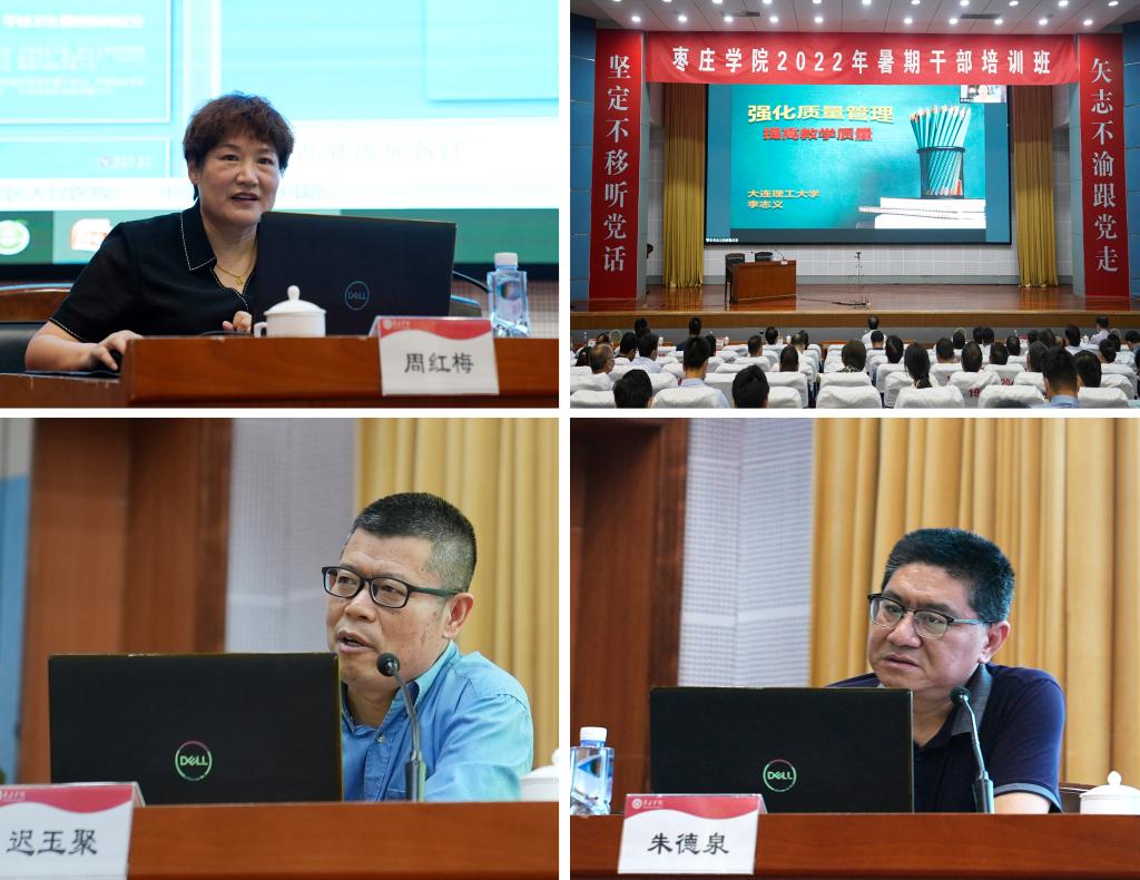 6日上午,山亭区人民医院执行理事、主任医师周红梅应邀以《学校突发公共卫生事件的应急处置》为题,结合丰富的理论积淀、通俗易懂的语言和鲜活生动的例子,从“什么是突发公共卫生事件、怎样做好突发公共卫生事件的应急处置、学校食源性疾病预防与控制和学校常见传染病预防与控制”等四个方面作了精彩的辅导报告。大连理工大学原副校长李志义以《强化质量管理 提高教学质量》为题作线上报告,深刻分析了什么是质量保障体系,全面阐释了为什么要建立质量保障体系,科学回答了如何建设质量保障体系,精准解读了如何评价质量保障体系。