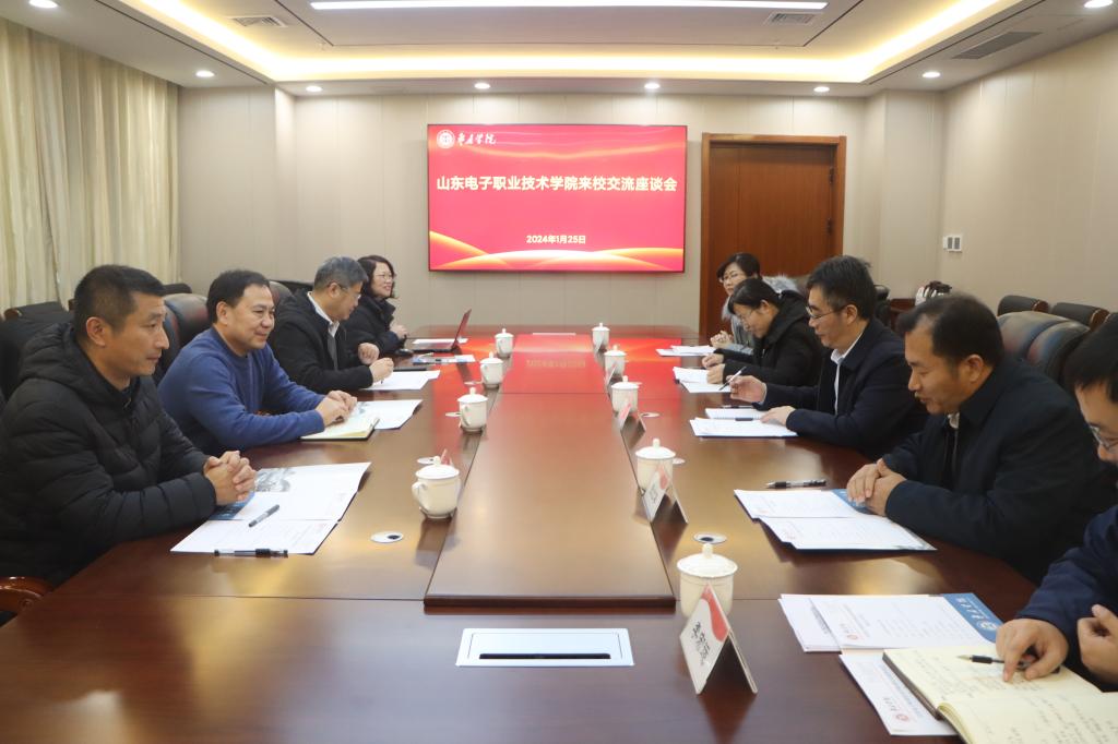 1月25日下午,山东电子职业技术学院党委副书记、院长张建臣一行四人来我校考察交流。校党委书记高峰,党委副书记、校长李文喜,党委委员、副校长安涛热情接待了张建臣一行。双方在明理楼532会议室举行座谈,教务处、光电工程学院等部门负责人参加座谈交流,座谈会由安涛主持。