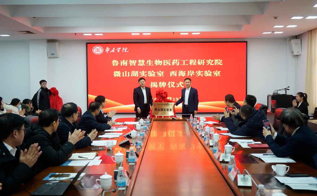 李目海和吴敏共同为研究院微山湖实验室揭牌。