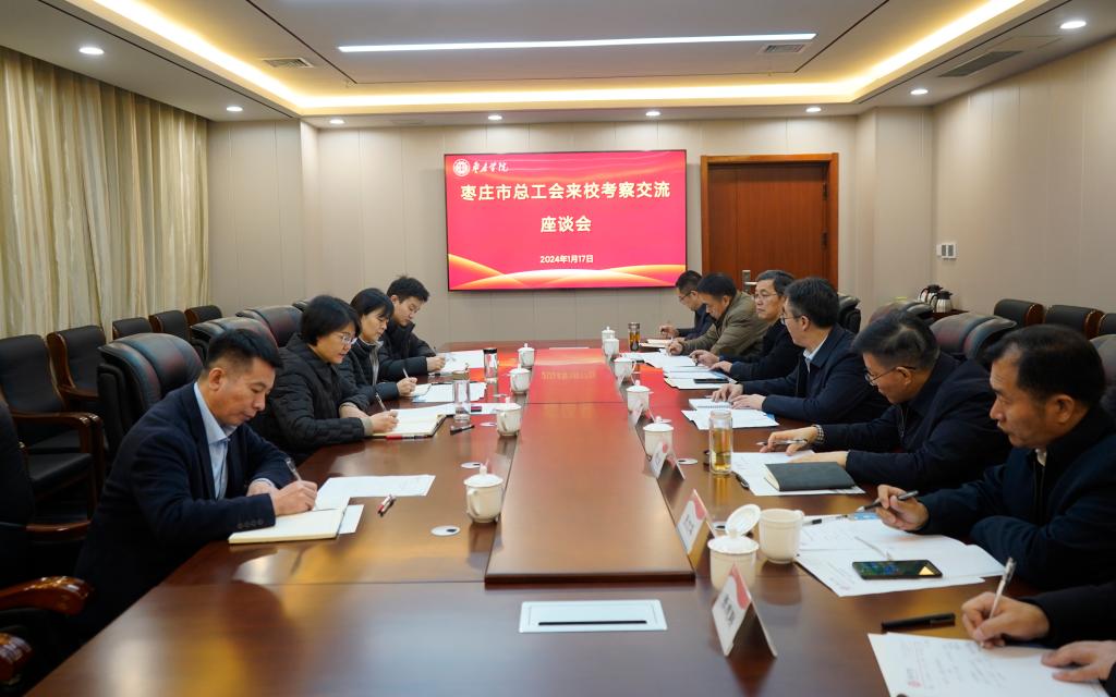 1月17日上午,枣庄市总工会党组书记、常务副主席闫羲和一行4人来我校考察交流。双方在薛城校区明理楼532会议室举行座谈,校党委委员、副校长安涛出席。座谈会由教务处处长、鲁班应用技术学院院长张立华主持,校工会、学生工作处、教务处、传媒学院、鲁班应用技术学院等单位负责人参加座谈交流。