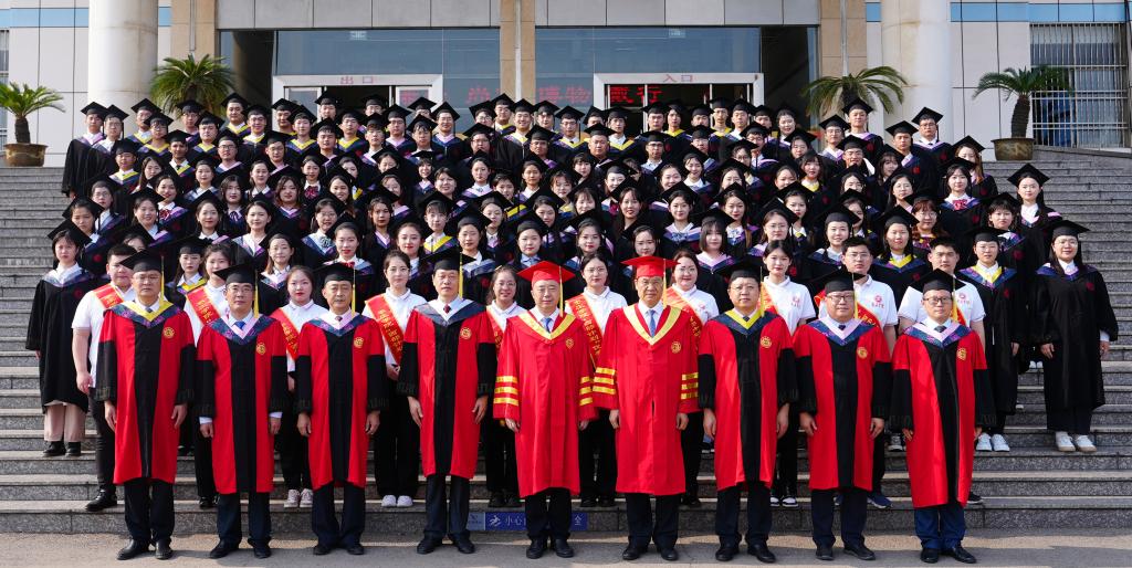 在毕业生即将踏上人生新征程之际,李文喜深情寄语同学们:一要坚定理想信念,胸怀报国之志,在服务国家和社会中成就自我。所谓“立志而圣则圣矣,立志而贤则贤矣”。希望同学们树立“请党放心,强国有我”的远大志向,自觉把个人小我融入到祖国的大我、人民的大我之中,主动瞄准社会需要,在拼搏奉献中实现人生价值。二要加强道德修养,明辨是非曲直,矢志追求有高度和境界的人生。“大学之道,在明明德”。希望同学们牢记“从善如登、从恶如崩”的道理,始终保持积极的人生态度、良好的道德品质,积极参加志愿服务、主动承担社会责任,努力使自己成为堪当大任的时代新人。三要练就过硬本领,勇于突破创新,不断提升青春远航的技能本领。大志非才不就,大才非学不成。希望同学们毕业后能够一直保持学习的紧迫感和主动性,努力掌握更多文化知识和专业技能,在工作岗位上创造出实实在在的业绩,努力成为强国伟业的生力军。四要不驰于空想,不骛于虚声,用青春与热血报效祖国和人民。任何伟大的事业,都始于梦想而成于实干。希望同学们立足本职工作接续奋斗,不断汇聚实现梦想的磅礴力量,以青春之我逐华夏之阳、担时代之责、建强国之功,把有限的青春转化为无限的可能,在青春的赛道上跑出最好成绩。