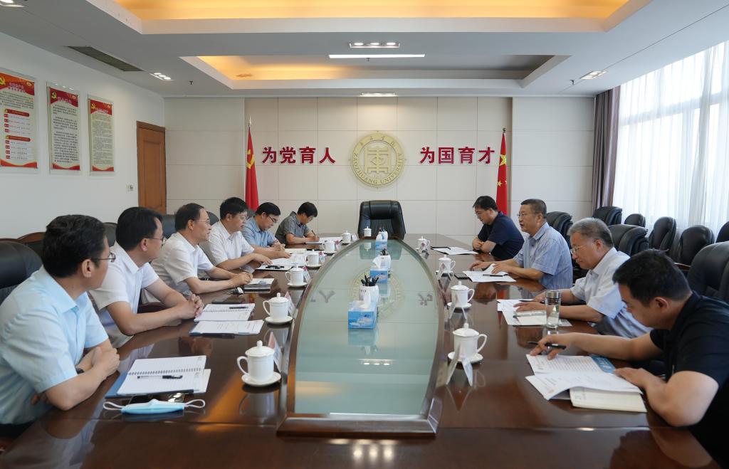 6月14日下午,泰山学院党委委员、副校长殷敏一行4人莅临我校,就内部审计、分校区管理和资产共享共用等事项进行调研交流。校党委副书记、校长李文喜,党委委员、副校长李目海,党委委员、统战部部长林勇在综合楼八楼会议室与殷敏一行举行座谈。我校审计处、国有资产管理处、实验管理中心负责人参加座谈。