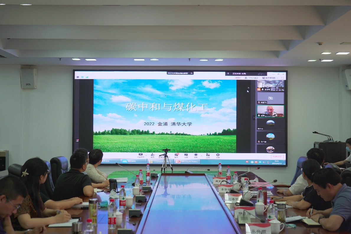 金涌院士、椿范立教授、于广锁教授、陈亚飞教授、魏伟研究员、樊卫斌研究员、马丁教授和邱介山教授应邀以线上形式作学术报告。报告内容涉及碳中和对中国经济增长和转型的意义、碳捕捉和利用、化工原料煤的优化、煤的气化、煤定向加氢以及煤制烯烃、汽柴油等方面内容。会议指出,碳中和是未来中囯经济增长和转型发展最大驱动力,将成为研究、科技开发、投资、生产、消费和流动等决策的依据;绿色低碳转型是今后全部经济活动的内核;高端煤化工是实现“碳中和”的有效途径,要做到探索一代、研发一代、示范一代。