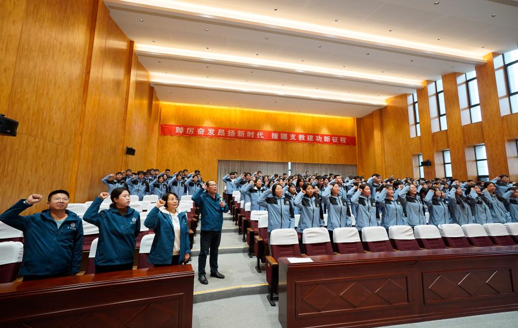 在张怒带领下,援疆实习支教师生进行集体宣誓。