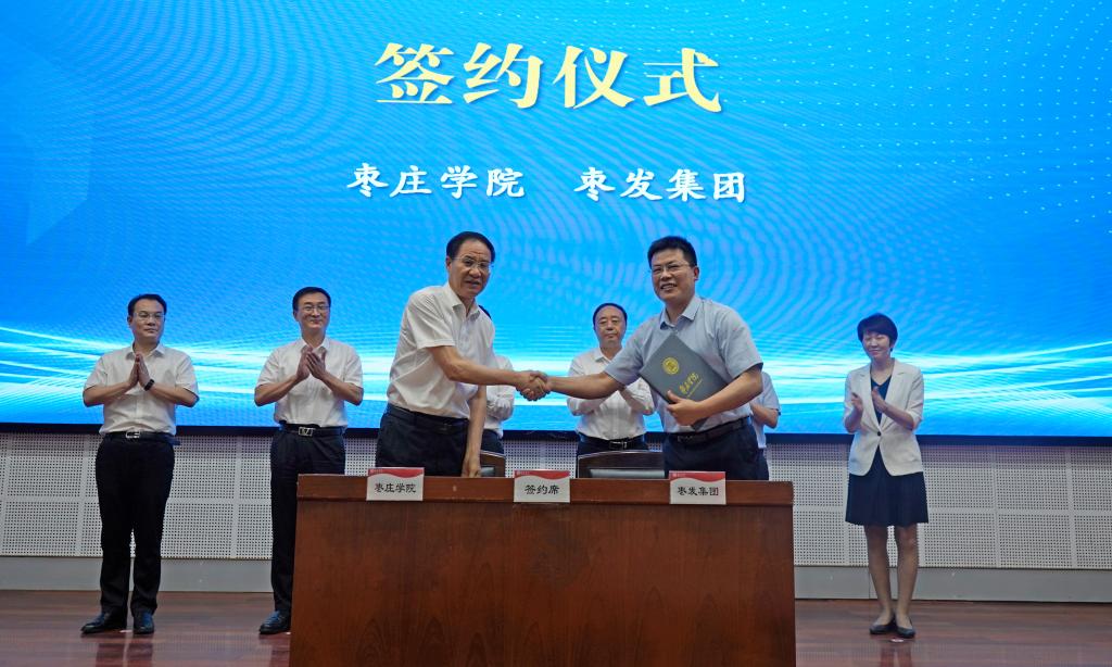 李文喜与孙发永分别代表304am永利集团官网与枣庄市基础设施投资发展集团有限公司签署合作协议,约定双方在科技协同、联创研发和共建大学生实习实训基地等领域开展合作。