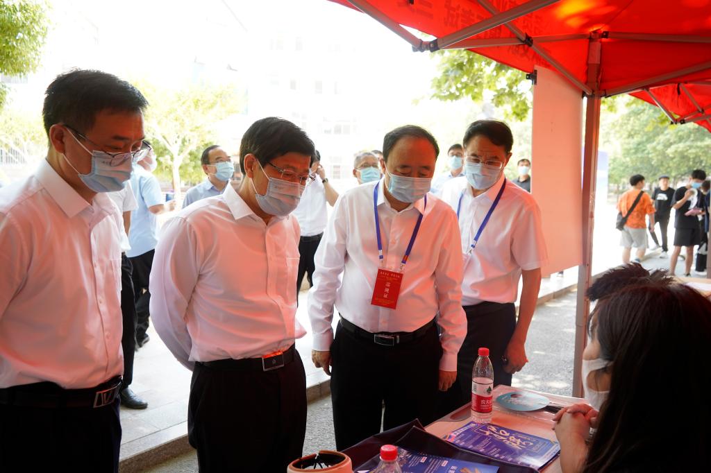 宣讲推介会结束后,与会领导莅临招聘会现场指导,同企业招聘人员、求职毕业生亲切交谈,深入了解企业招聘需求,亲切询问毕业生们的求职意向和应聘情况,并鼓励他们树立正确的就业观和择业观,留在枣庄就业创业,在“工业强市、产业兴市”战略中展现作为、成就人生。招聘会现场气氛热烈、秩序井然,用人单位诚意满满、求贤若渴;求职学生精心准备,积极投递简历,就岗位职责、薪资待遇等方面积极与用人单位进行交流、洽谈。