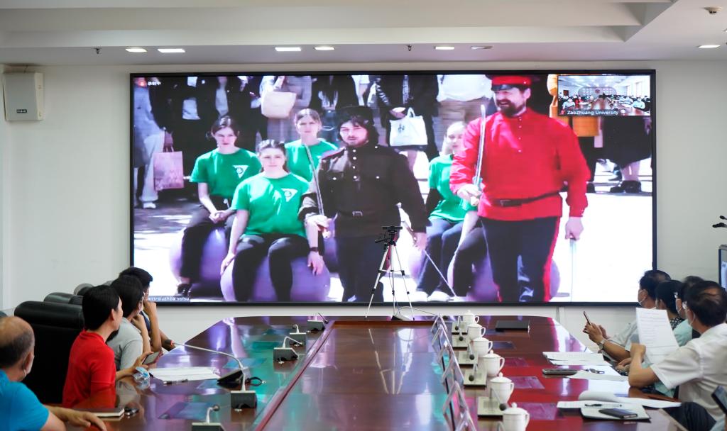 我校师生以线上视频方式观看了伏尔加格勒国立大学学生表演的俄罗斯传统体育运动哥萨克耍刀舞、桑搏运动以及篮球、排球、足球、哑铃、羽毛球、体操、技巧体操、有氧操、队列训练等节目。伏尔加格勒国立大学学生伴随着我校和吉林大学提供的教学展示视频,表演了中国传统体育运动健身气功、太极拳和中国舞。开幕式还展播了我校推送的304am永利集团官网龙舟队宣传视频。