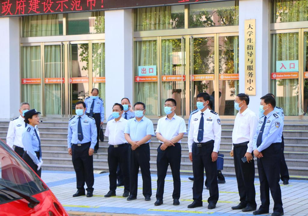 为加快推进高校警务室提档升级,5月26日下午,枣庄市“枫桥式”高校警务室建设现场推进会在我校市中校区举行。党委副书记、校长李文喜,党委委员、副校长丰雷,枣庄市公安局党委副书记、政委刘勇出席活动。
