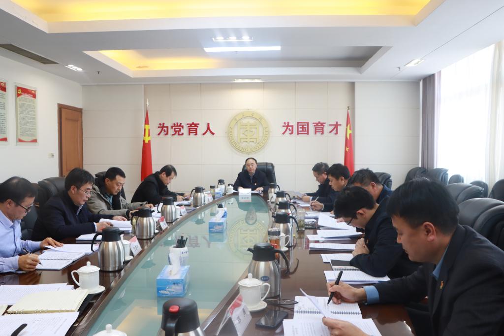 2月24日下午,校党委在综合楼八楼会议室组织开展专题学习,学习习近平总书记在全国党的建设研究会第七次会员代表大会上作出的重要指示,同时结合学校实际,研究贯彻落实意见。校党委书记曹胜强主持学习并讲话,校领导李文喜、曾宪明、李目海、路绪剑、丰雷、安涛、孙正、张昌林、林勇参加学习。