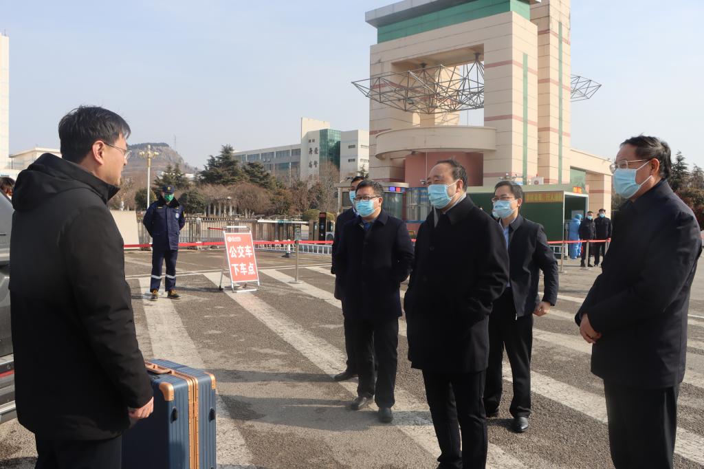 根据学校2022年春季开学报到学生分批次错峰返校要求,2月19日,我校迎来首批返校学生。上午,校领导曹胜强、李文喜、丰雷、安涛、林勇,带领办公室、学生工作处、后勤服务处、团委、保卫处等部门负责同志,深入市中校区和新城校区实地检查指导学生开学报到和疫情防控工作,并看望慰问返校学子和一线工作人员。