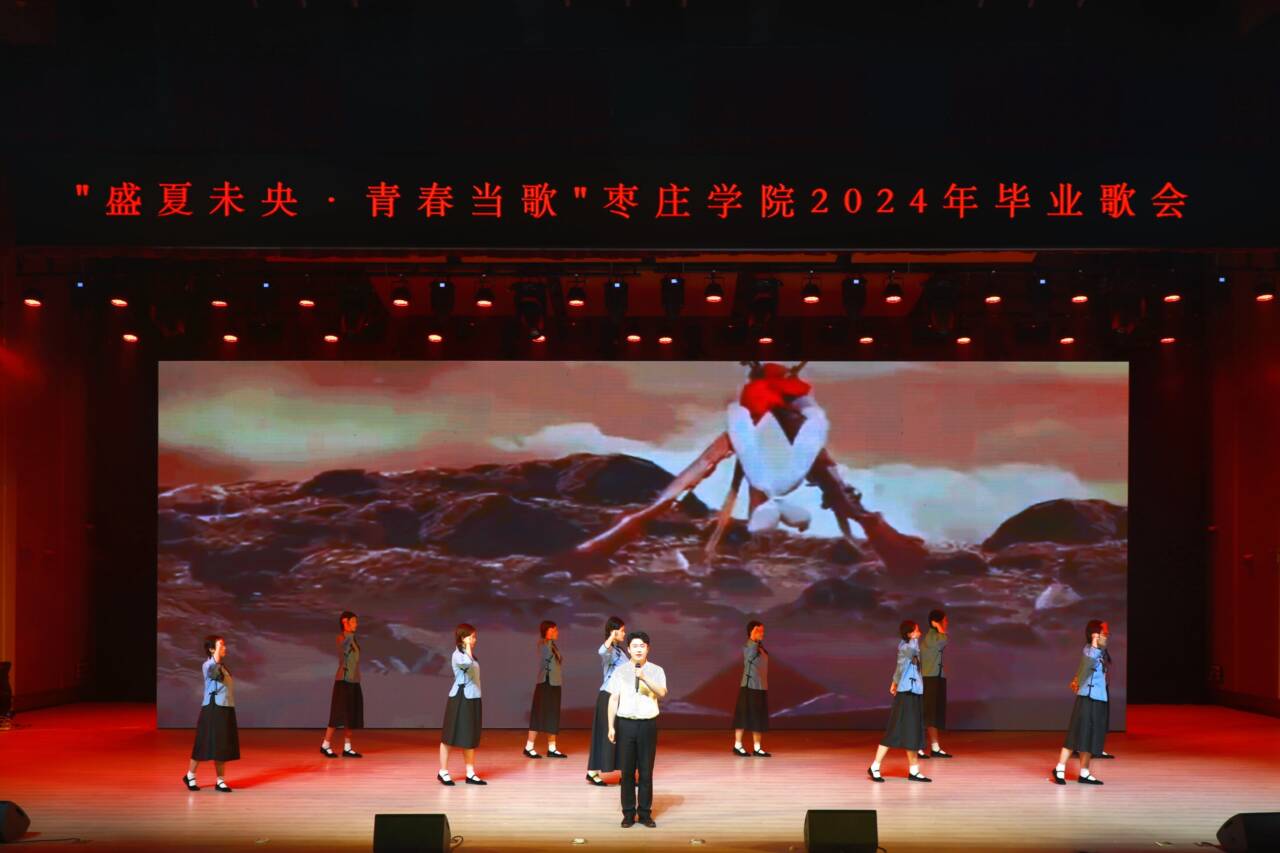 本次歌会由宣传部、学生工作处、团委、关工委、音乐与舞蹈学院主办。歌会分为《青春·骊歌》《盛夏·未央》《当歌·远航》三个篇章,以旗帜鲜明的政治引领及枣院学子成长成才之路为主线,通过乐团、电声乐队、歌伴舞、情景演唱、朗诵、小品、剧情舞、合唱等丰富多样的表现形式,结合服装走秀、礼仪风采等展示呈现了立体、多元的现场效果。