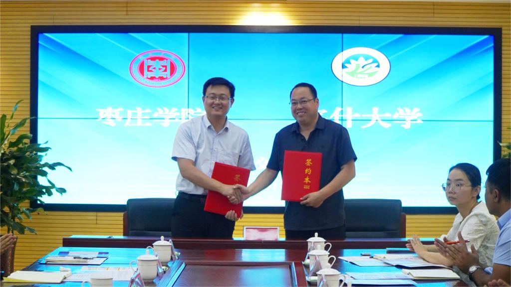 王京龙代表我校食品科学与制药工程学院与喀什大学生命与地理科学学院共同签署产学研合作协议,约定双方在人才培养、师资队伍建设、科技创新等方面开展交流合作。