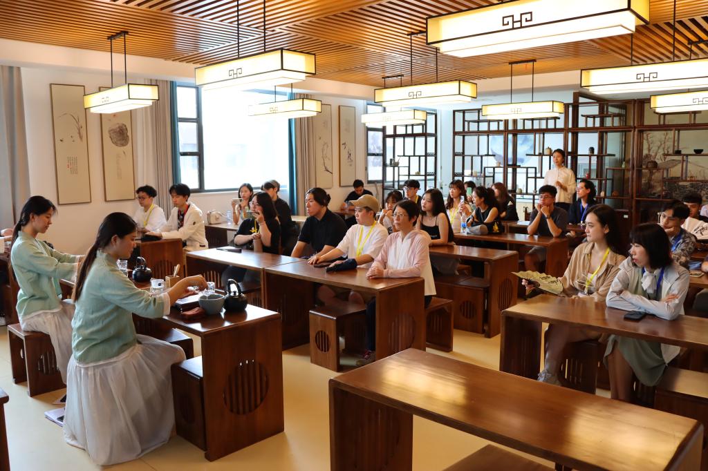 会前,参访团一行参观了我校世界语博物馆、空乘培训基地,体验了中国传统茶艺。