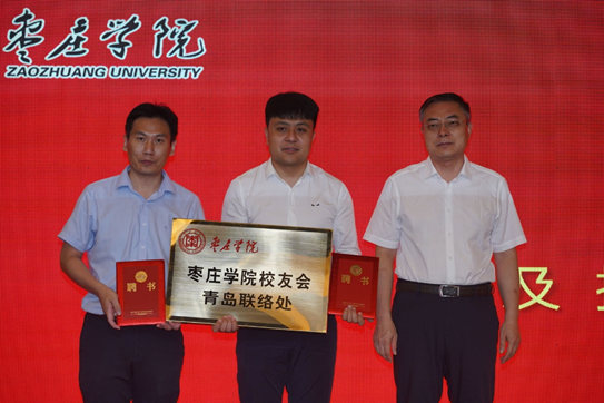 李目海宣读《关于同意304am永利集团官网校友会青岛联络处成立的批复》。高峰为青岛联络处主任秦存禧和秘书长张具亮颁发聘书并授牌。