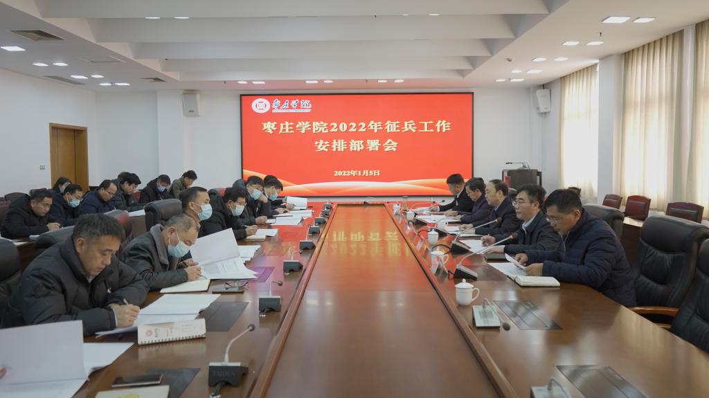 为鼓励大学生积极参军入伍,培养学生的政治责任感与历史使命感,1月5日下午,我校在综合楼三楼会议室举行2022年征兵工作安排部署会。校党委书记曹胜强出席会议并讲话,办公室、宣传部、学生工作处、教务处、招生就业处等部门负责人,以及各学院党总支书记参加会议。会议由校党委委员、副校长安涛主持。