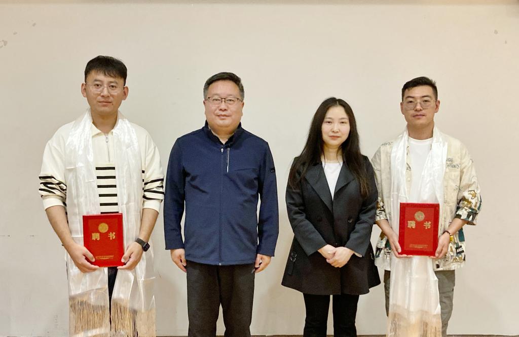 丰雷和田守碧共同为西藏校友联络处副主任王鑫和副秘书长李宁颁发聘书。