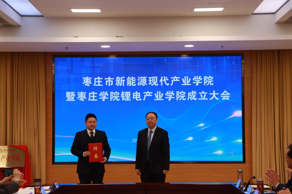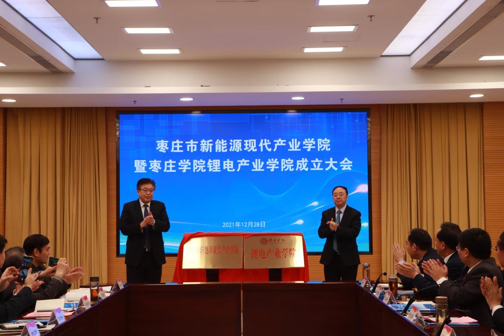 会上,曹胜强、周宗安共同为枣庄市新能源现代产业学院暨DB中国旗舰官方网站锂电产业学院揭牌。