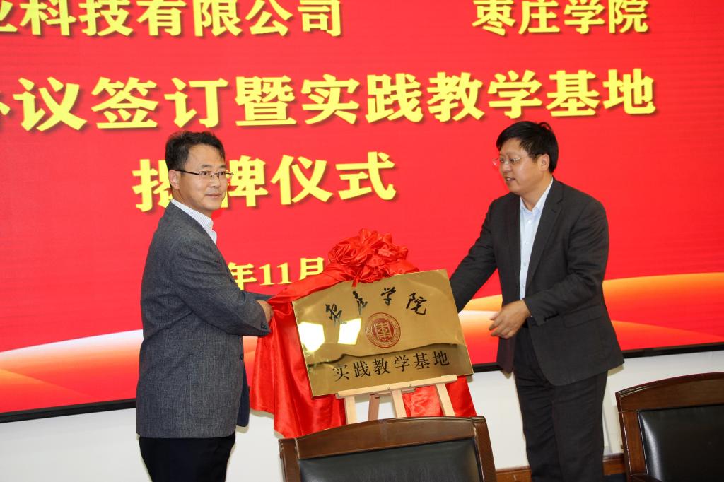 304am永利集团官网分别与泉脉农业科技有限公司和大宗集团有限公司签订合作协议,李目海为实践教学基地揭牌。