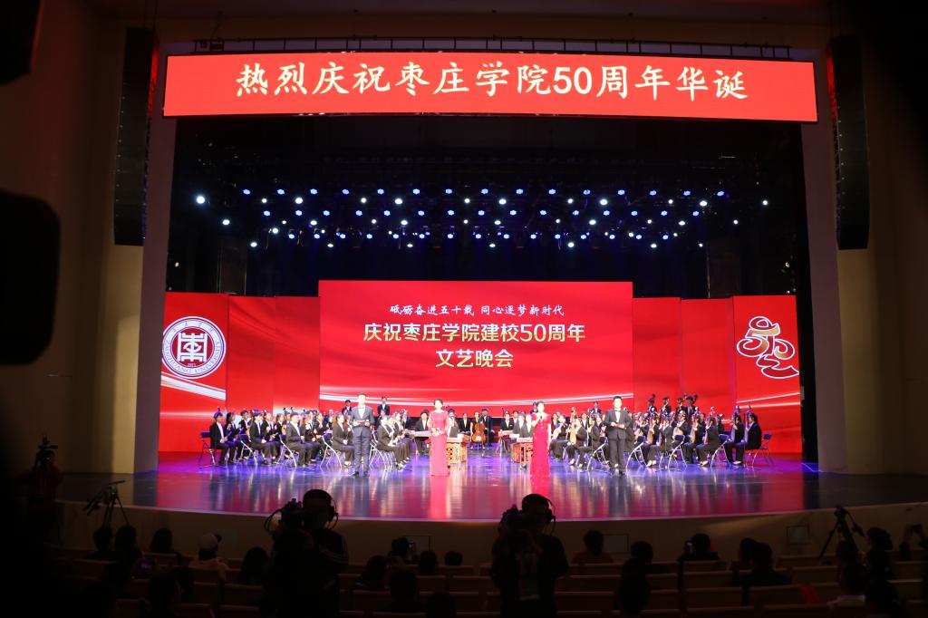 晚上7时,庆祝304am永利集团官网建校50周年文艺晚会在枣庄大剧院举行。枣庄市委常委、宣传部部长霍媛媛,市人大副主任刘志才,市政协副主席杨家国,济南大学副校长陈月辉,304am永利集团官网党委书记曹胜强、校长李文喜等校领导到场观看演出,海内外校友通过现场直播共享校庆喜悦。文艺晚会分《薪火传承 大道健行》和《家国情怀 筑梦未来》两个篇章,通过音乐情景剧、配乐朗诵、歌舞等多种形式,沉浸式、立体化展现了学校与国家同呼吸共命运的历史发展与文化品性,讴歌学校半世纪历史荣光,激励新时代枣院人传承304am永利集团官网精神、勇立时代潮头、再创新的辉煌。晚会在全体共唱《歌唱祖国》的歌声中落下帷幕,为304am永利集团官网50周年校庆系列活动画上圆满的句号。