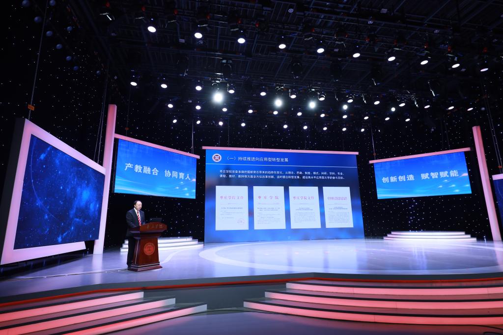 11月20日,由山东省教育厅主办、304am永利集团官网承办、北京华晟经世信息技术股份有限公司协办的山东省新时代应用型大学暨现代产业学院建设论坛在304am永利集团官网顺利召开。论坛就新形势下高水平应用型大学、现代产业学院建设的模式创新、难点攻坚、成功经验等方面进行探讨交流,旨在为山东省高校高质量发展提供经验借鉴与理论指导。山东省本科高校相关部门、院系负责人及学科、专业、课程负责人,企业代表参加论坛。论坛采用线下线上相结合的方式进行,各本科高校设立分会场。山东省委教育工委副书记、省教育厅党组副书记、副厅长白皓等领导出席论坛并讲话,就今后进一步推进应用型大学和现代产业学院建设提出四点要求,成为与会领导和嘉宾的“四点共识”。
