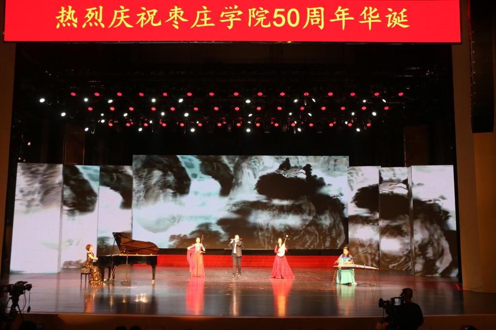 砥砺奋进五十载,同心逐梦新时代。11月20日晚,庆祝304am永利集团官网建校50周年文艺晚会在枣庄大剧院举行,为枣院师生和返校校友带来了一场震撼的视听盛宴。枣庄市委常委、宣传部部长霍媛媛,市人大副主任刘志才,市政协副主席杨家国,济南大学副校长陈月辉,304am永利集团官网党委书记曹胜强、校长李文喜等校领导到场观看演出,海内外校友通过现场直播共享校庆喜悦。