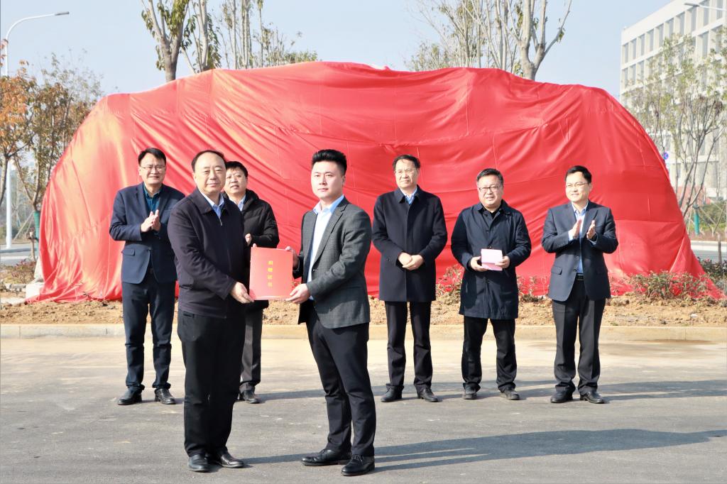 曹胜强、李文喜、李目海与王德凯共同为名石揭幕。曹胜强代表学校向王德凯颁发捐赠证书。