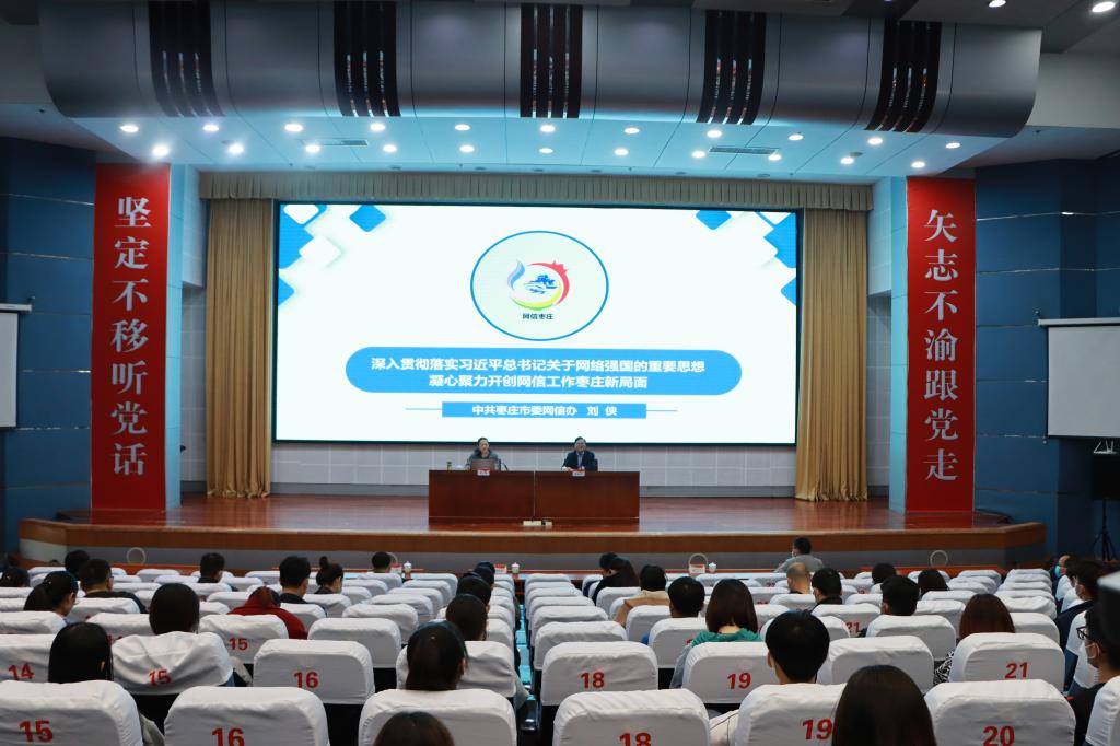 随后,刘侠在综合楼报告厅作了题为《深入贯彻落实习近平总书记关于网络强国的重要思想,凝心聚力开创网信工作枣庄新局面》的专题报告。校本部党总支副书记,团总支书记,团委、学工处、保卫处、网络中心、社科处、国际交流处、学报编辑部负责人,各单位宣传员、网评员、舆情信息员,全体辅导员到场聆听报告,新城校区相关人员通过视频直播同步收看。校党委委员、宣传部部长张昌林主持报告会。