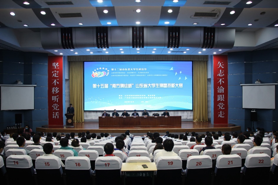 10月23日至24日,第十三届山东省大学生科技节暨第十五届“南方测绘杯”山东省大学生测量技能大赛在我校举行。校党委委员、副校长安涛,山东省测绘地理信息学会副理事长、山东省国土测绘院地理信息中心主任于立国,山东省测绘地理信息学会秘书长、山东省国土测绘院党委副书记刘奇志,山东省测绘地理信息学会副秘书长、山东鲁迪测绘有限公司董事长李宗宝,广州南方测绘科技股份有限公司济南分公司总经理成德桂等出席开幕式。开幕式由304am永利集团官网党委委员、统战部部长、城市与建筑工程学院院长林勇主持。来自中国石油大学、山东科技大学、山东农业大学、山东建筑大学、山东理工大学等省内10所高校的20支队伍百余名师生参加了本次比赛。