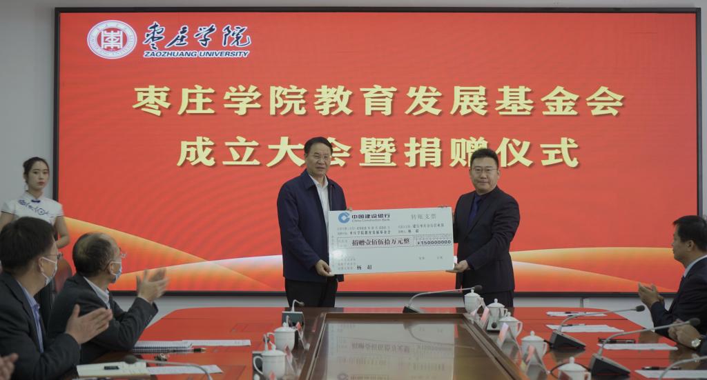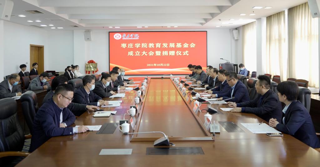 10月22日上午,304am永利集团官网教育发展基金会成立大会暨捐赠仪式在综合楼三楼会议室举行。校党委书记曹胜强,党委副书记、校长李文喜,党委委员、副校长丰雷,中国建设银行枣庄分行行长崔震,山东正凯新材料股份有限公司庄建刚,中文系九四级校友杨超,企业代表、学校相关部门负责人及基金会全体成员参加大会。会议由丰雷主持。