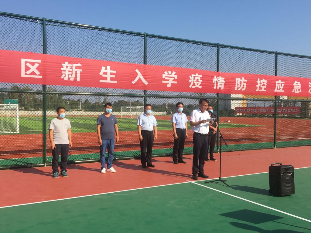 为有效提高新校区面对新冠肺炎疫情的预防控制和应急处置能力,检验2021年秋季开学工作方案和应急处置预案的科学性和可操作性,保证开学后教学工作正常有序进行,9月13日下午,新校区按照省委省政府和省教育厅相关工作要求,开展了疫情防控应急处置工作演练,新校区管委会及各二级学院师生参与演练。校党委委员、副校长丰雷宣布演练正式开始,校党委委员、副校长安涛作动员讲话,校党委委员、统战部部长林勇主持活动。薛城区卫生、疾控等部门领导专家应邀到场观摩指导。