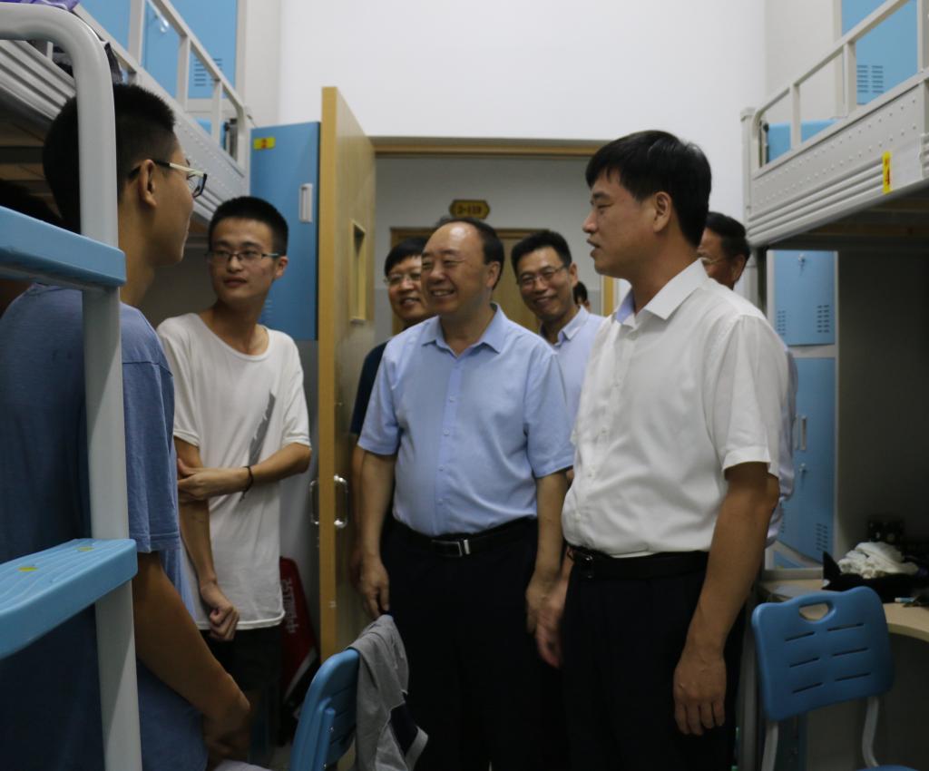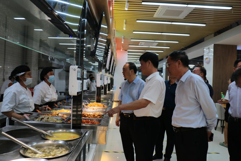 李守江一行首先来到学生公寓,与学生亲切交流,询问他们来到新校区后的学习生活情况。随后又到学校餐厅进行调研,详细询问了食堂有关菜价、食品安全管理等方面的情况。李守江强调,学校要加强饮食安全管理,服务好师生,始终把饮食安全作为头等大事来抓。