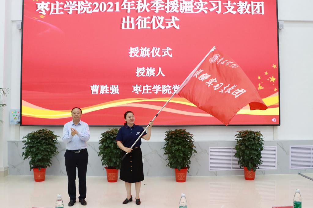 曹胜强为援疆实习支教队伍授旗。