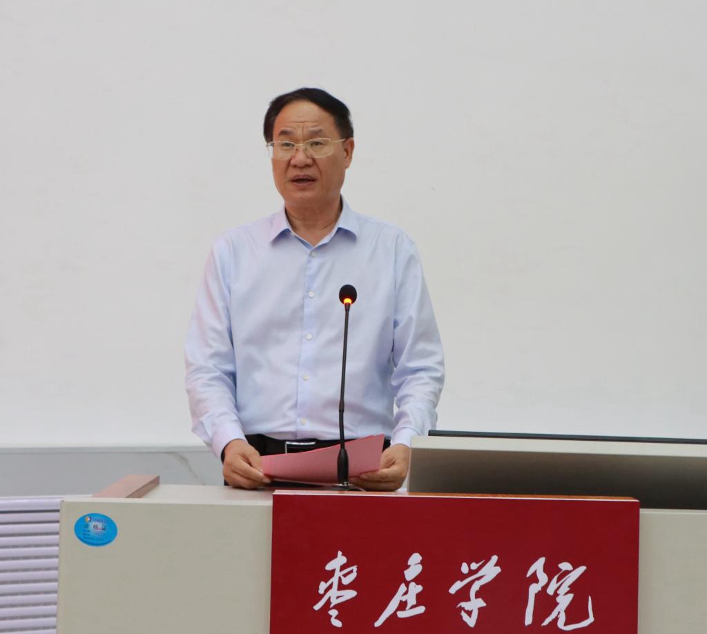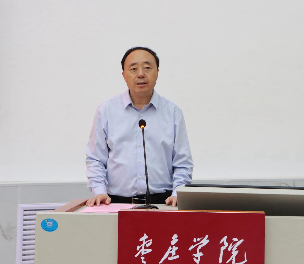 李文喜在主持时指出,援疆支教团师生即将跨越万水千山,从祖国最东部到最西部,跨越大半个中国到大漠边陲,为祖国的边疆事业奉献自己的青春年华,书写精彩的人生乐章,这充分体现了师生们的家国情怀、责任担当和远大的理想抱负和人生追求。希望全体支教师生牢记学校的期望和重托,自己担负的职责和使命,坚定信念、脚踏实地、勇于担当,以新时代“泰山挑山工”的精神倾力支教工作,展现枣院师生良好形象,续写援疆支教光荣篇章,为新疆教育事业发展和民族团结贡献“枣院”力量。