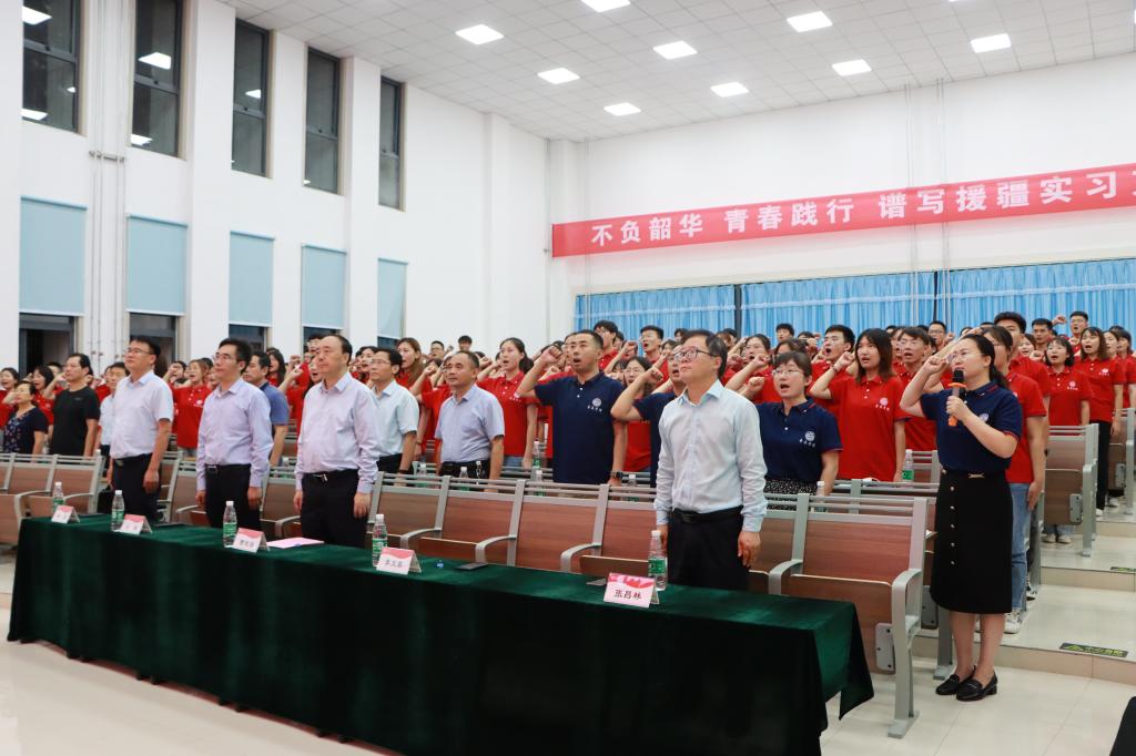 在支教团教师代表华莹的带领下,援疆支教师生进行了集体宣誓。