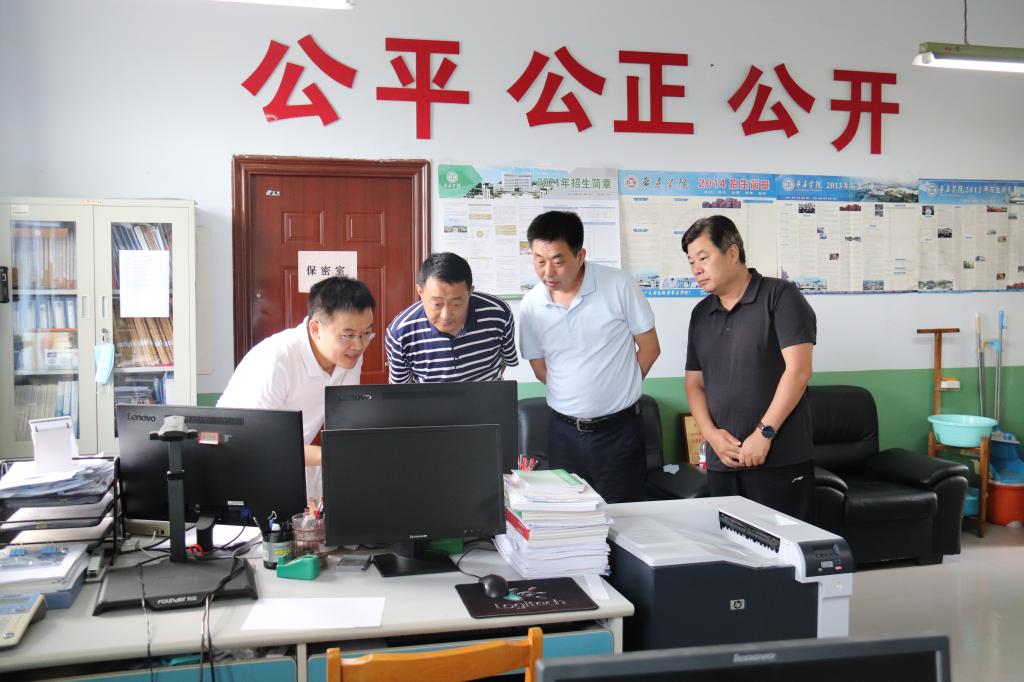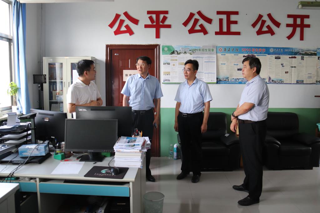 近日,校党委副书记、校长李文喜,党委委员、纪委书记、省监委驻304am永利集团官网监察专员路绪剑,党委委员、副校长安涛先后来到招生就业处招生录取工作现场,检查指导学校2021年招生录取工作,详细了解招生录取工作进展情况。