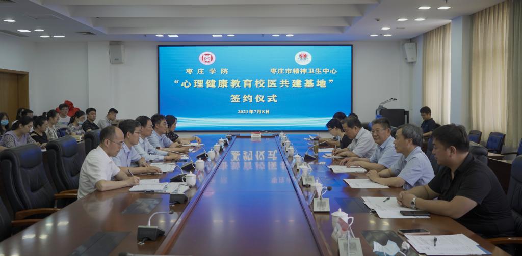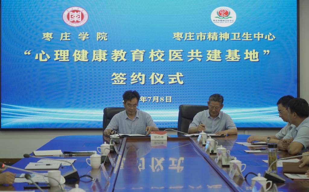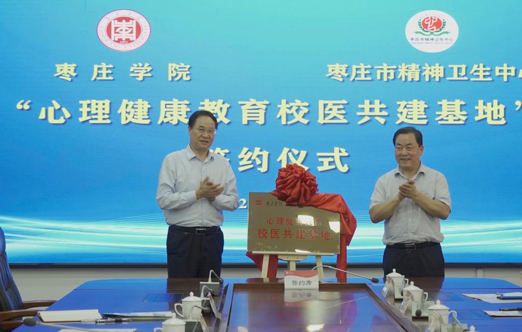 7月8日上午,我校与枣庄市精神卫生中心在综合楼三楼会议室举行“心理健康教育校医共建基地”签约揭牌仪式。校党委副书记、校长李文喜,党委委员、副校长安涛,枣庄市精神卫生中心党委书记贺敬义、院长江永华出席仪式。枣庄市精神卫生中心相关科室主任,学生工作处、心理与教育科学学院负责人,各学院党总支副书记、心理辅导员参加仪式。