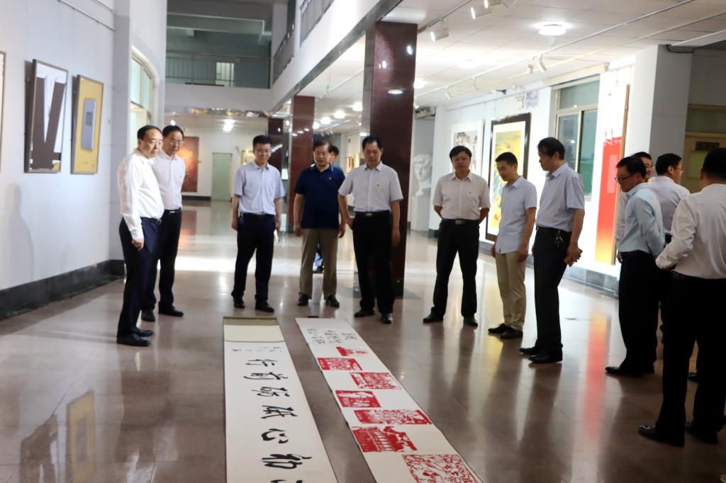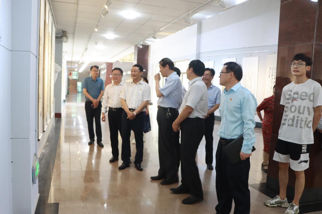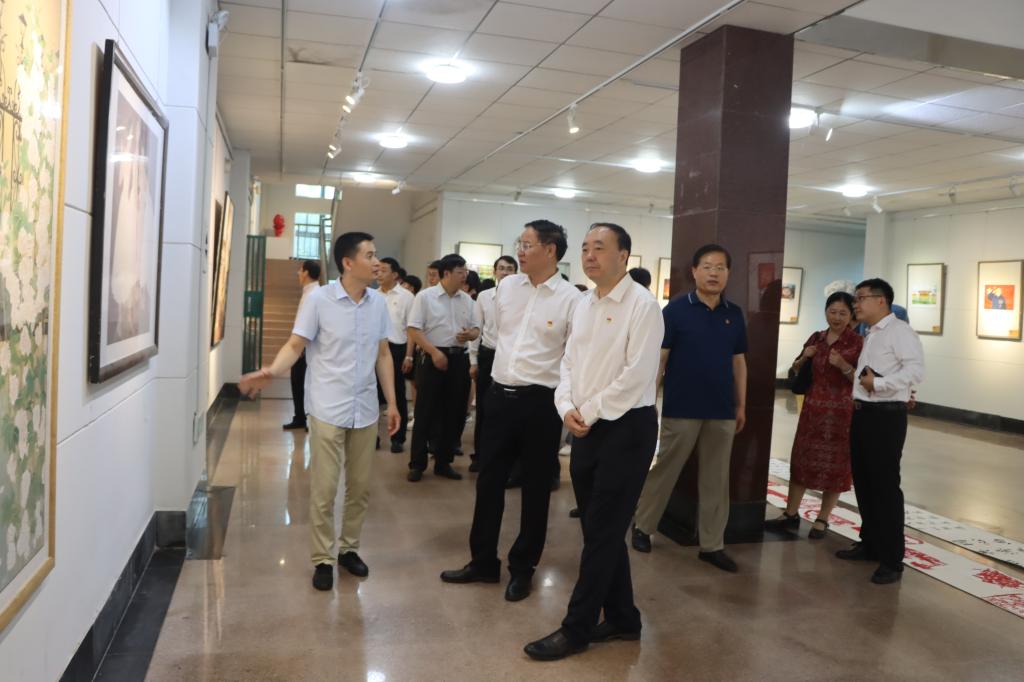 盛世和谐铸辉煌,翰墨丹青献给党。6月29日下午,由党委宣传部、工会、离退休工作处主办,美术与艺术设计学院、传媒学院承办的“翰墨飘香颂党恩、丹青敷彩绘初心”庆祝中国共产党成立100周年书画摄影展,在美术与艺术设计学院一楼展厅正式展出。校领导曹胜强、李文喜、曾宪明、李目海、路绪剑、丰雷、安涛、孙正、张昌林、林勇,莅临书画摄影展参观指导。办公室、工会、离退休工作处、美术与艺术设计学院负责人与部分师生陪同参观。