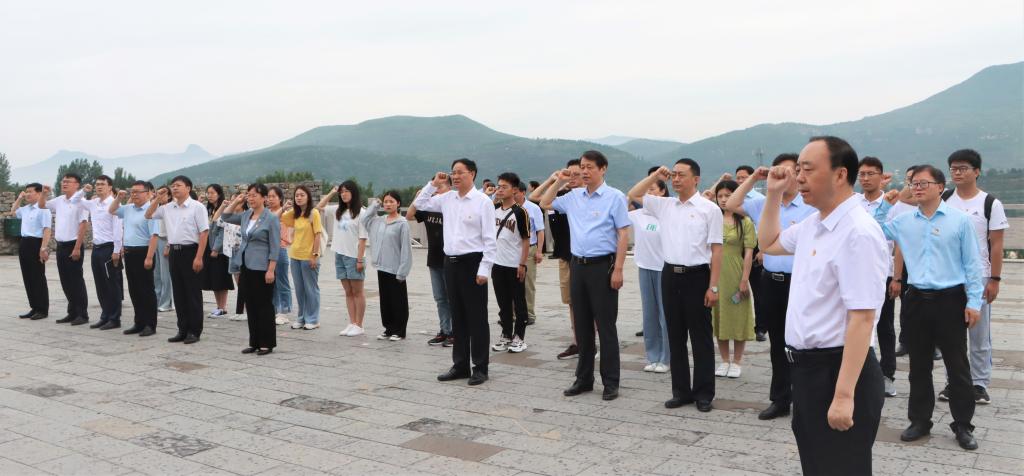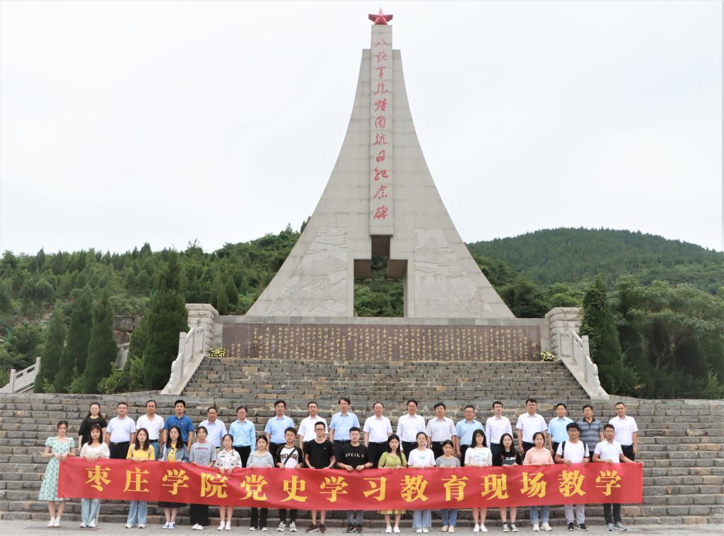 在八路军抱犊崮抗日纪念园,全体人员开展了重温入党誓词、为革命先烈敬献花篮、集体瞻仰纪念碑等现场教学活动。