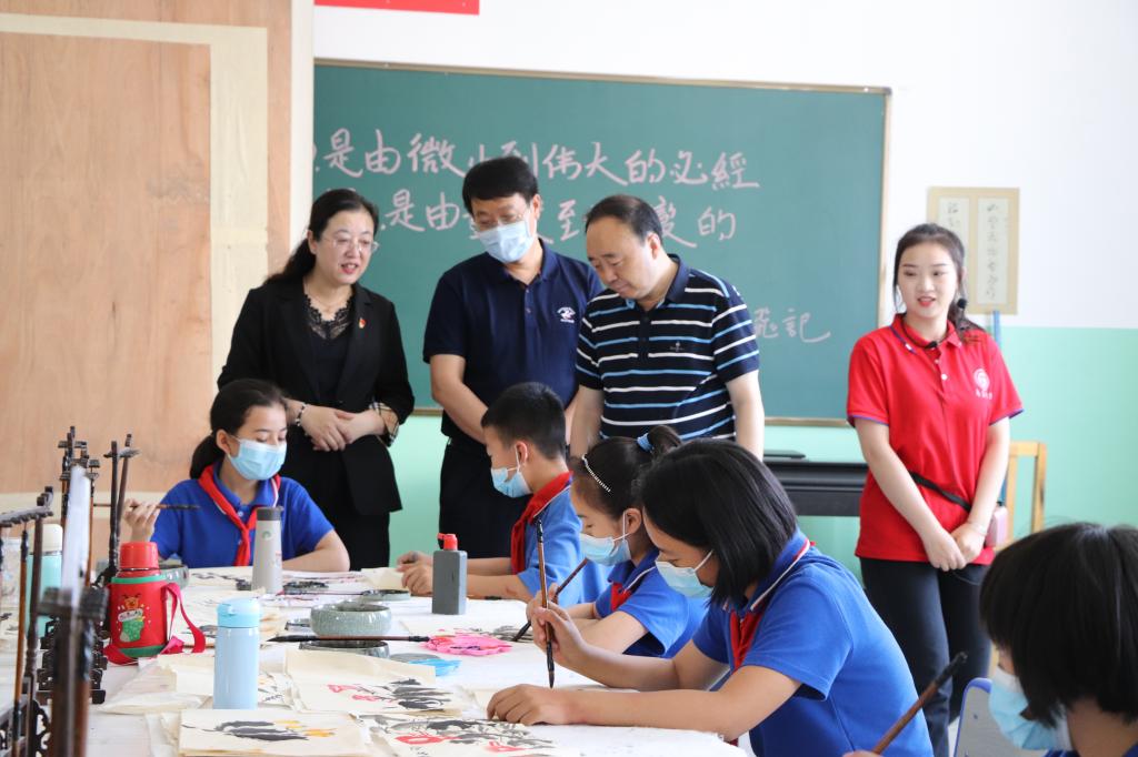 曹胜强一行先后走访了疏勒县中心幼儿园、疏勒县第二小学、巴仁乡受援学校、“潘玉莲齐鲁爱心小课堂”、支教团师生所在公寓等地看望支教团师生。每到一处,曹胜强都与支教团学生亲切交流,询问同学们的学习、生活、教学情况,对同学们敢于担当、甘于奉献的支教行为表示赞扬,对支教团师生在支教工作中传承创新、文化润疆、打造支教团品牌等方面作出的努力给予充分肯定,并勉励大家继续发扬支教团优良传统,讲好援疆故事,努力为民族团结做出积极贡献。