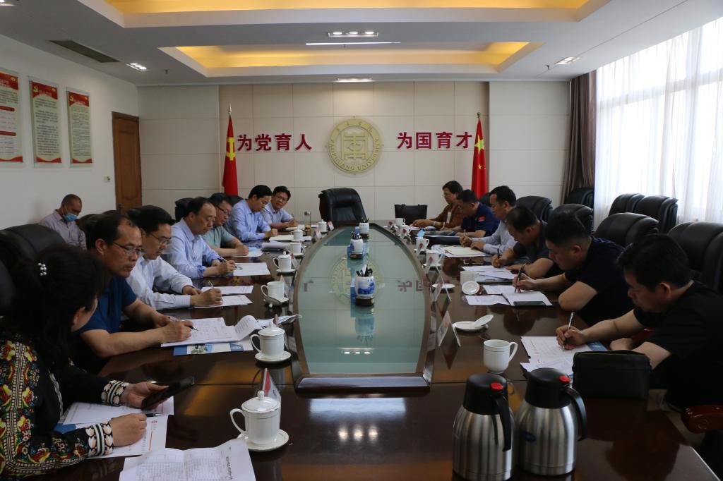 实地检查后,督导组在综合楼八楼会议室进行工作反馈。校党委书记曹胜强,校党委委员、副校长丰雷,后勤服务处、保卫处、校园建设与管理处等部门负责人参加反馈会。
