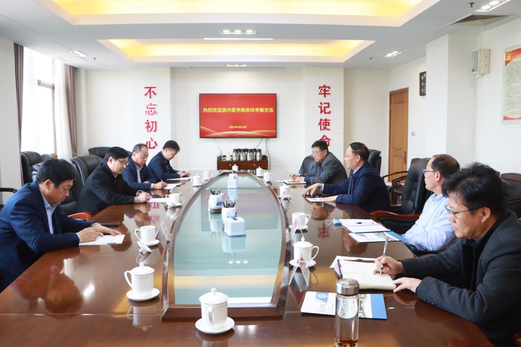 4月16日下午,滨州医学院发展规划处处长王久永一行4人来我校考察交流。校长李文喜热情接待了王久永一行,随后双方在综合楼八楼会议室举行座谈。发展规划处、校园建设与管理处、保卫处负责人参加座谈会。座谈会由李文喜主持。