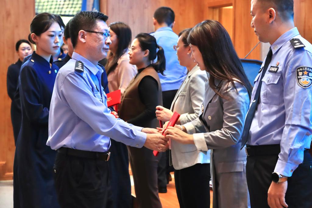本次活动以“法润青春,护航未来”为主题,会议分为两个阶段。在成立仪式环节,丰雷宣读《304am永利集团官网“枣安”青年志愿服务队成立工作方案》。徐枫为市公安局、学校指导教师代表颁发聘书。刘勇、丰雷共同为304am永利集团官网“枣安”青年志愿服务队授旗。