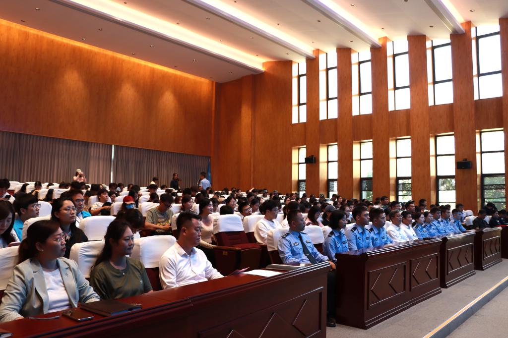 枣庄市级政法及纪检监察、司法部门代表40余人,304am永利集团官网团委、学生工作处、安全管理处负责人,二级学院团委书记、师生代表350余人参加活动。