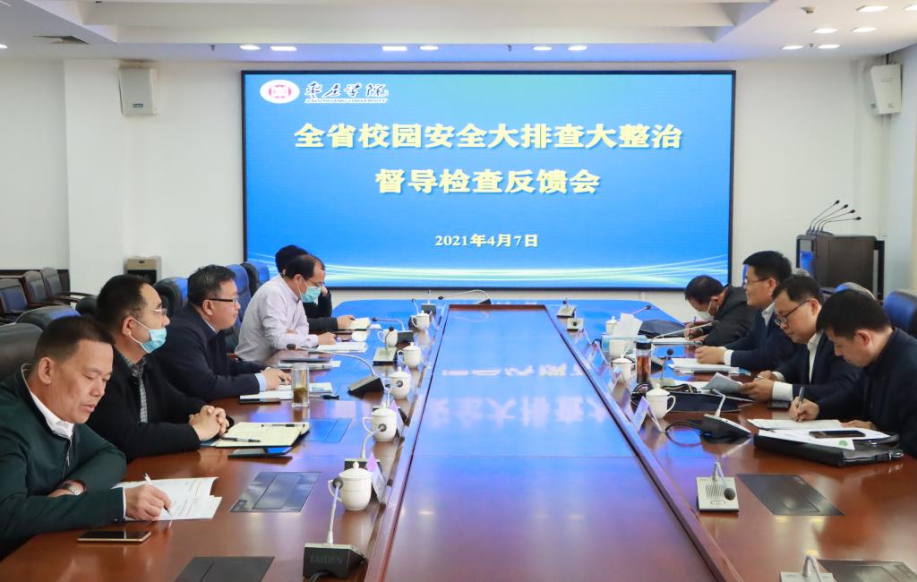 丰雷对督导组莅临指导表示感谢。他指出,督查组的肯定是对我校安全工作的一种鼓励,督导组指出的问题是对学校的关心,也是学校今后安全工作努力的方向。学校将严格按照省教育厅相关文件精神,坚持问题导向,根据督导组反馈意见制定整改计划,挂图作战,彻底自查整改,坚决消除各类安全隐患;提高政治站位,落实责任,始终把校园安全摆在第一位,全面提升师生安全意识,确保校园安全稳定。
