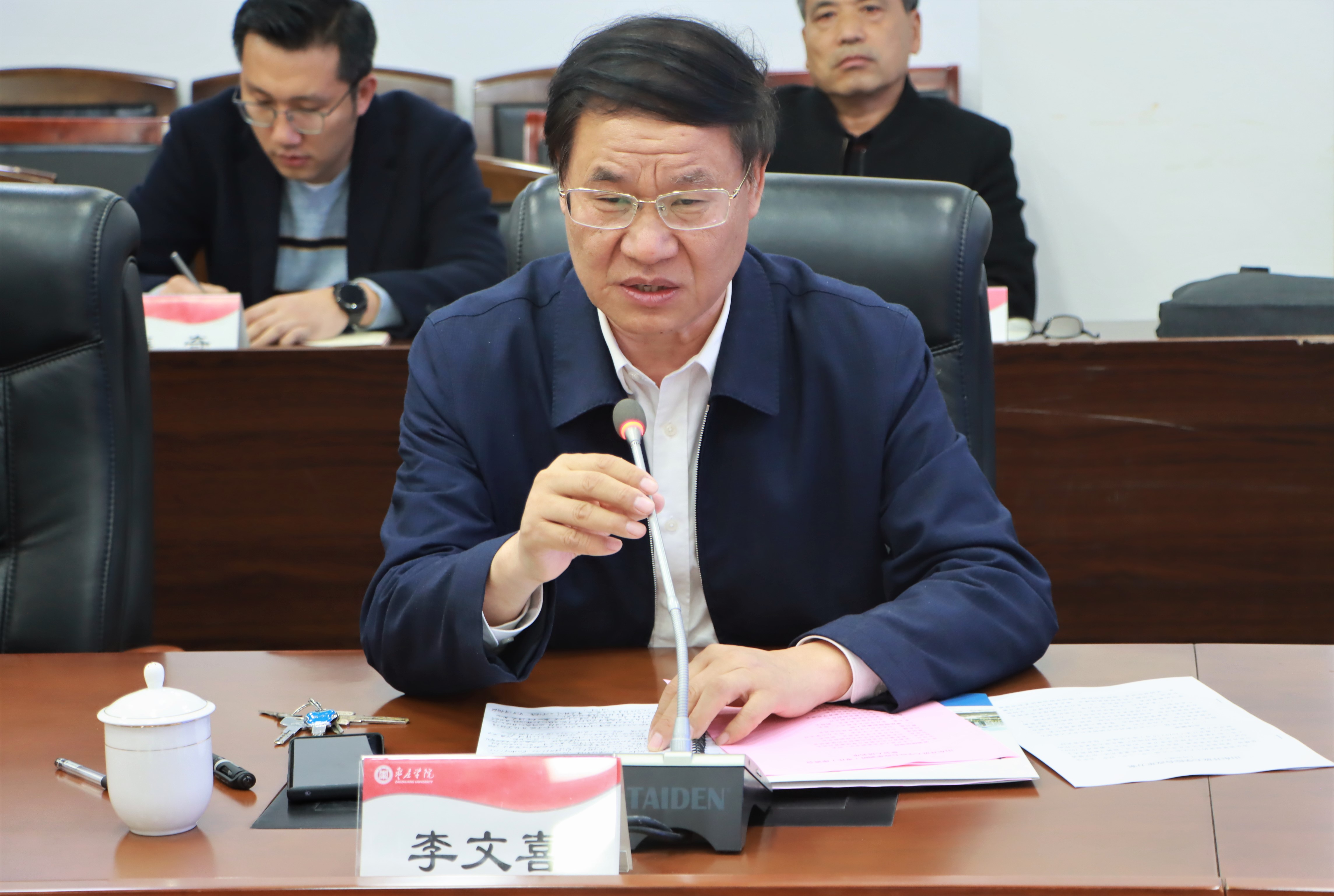 李文喜对徐文谋、孙祖兴一行表示欢迎,并简要介绍了我校的办学历史、高层次人才引进、学科建设、产教融合、人才培养等基本情况,重点介绍了我校全面推进应用型人才培养模式改革、深化产教融合校企合作等方面情况。