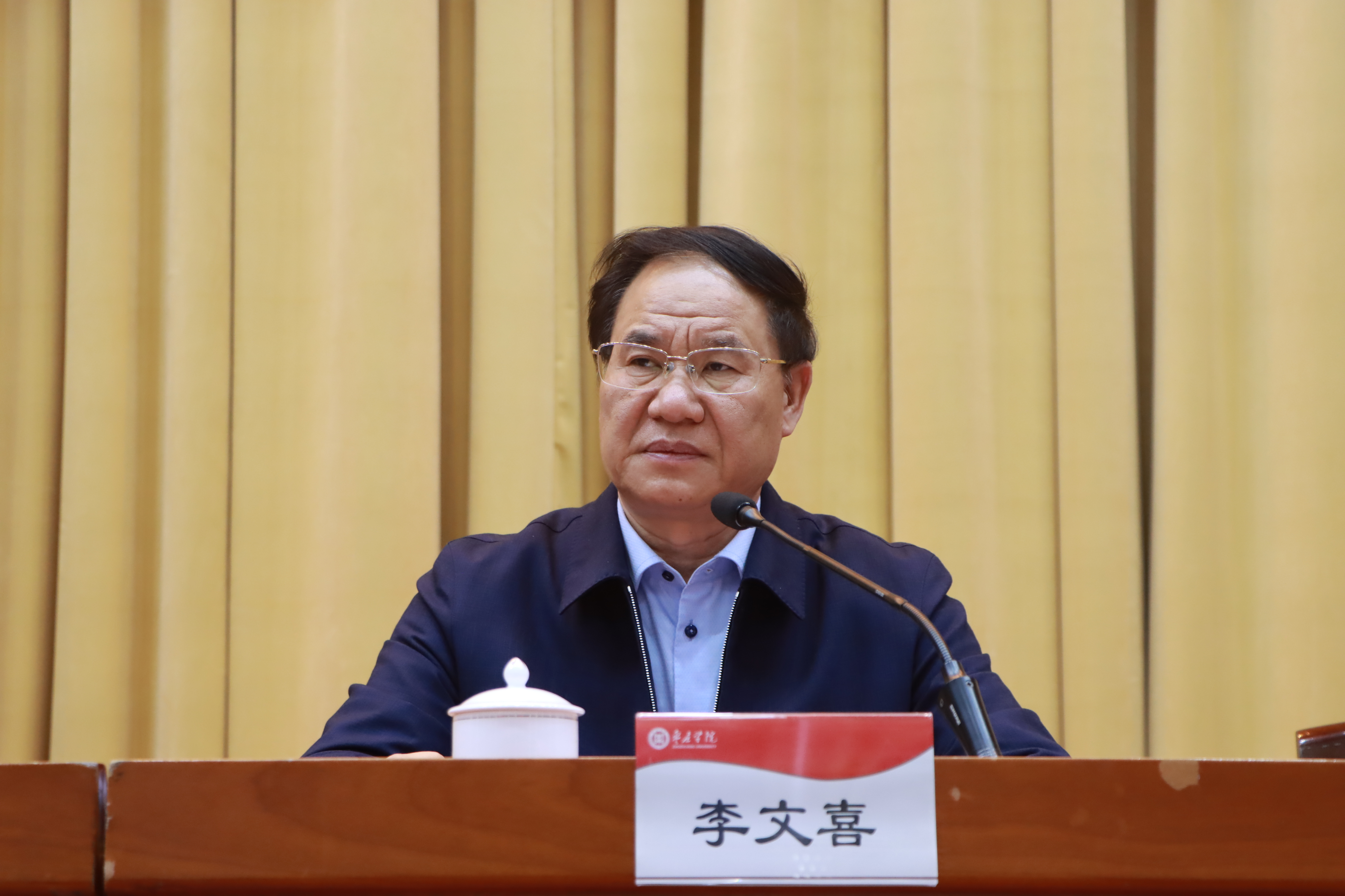 李文喜就会议精神的贯彻落实提出三点要求:一是要迅速掀起党史学习教育热潮,大力营造全校开展党史学习教育的浓厚氛围,要切实提高政治站位,强化政治担当,把思想和行动统一到总书记在党史学习教育动员大会上的重要讲话精神上来;二是要精心组织好充分彰显高教特色的相关活动,坚持把开展党史学习教育与学校思想政治工作结合起来,紧贴教育科研管理的实际,突出教师和学生两个群体,搞好统筹谋划,推动党史学习教育走深走实、入脑入心;三是要履职尽责,确保学习教育实效,切实把党史学习教育与年度中心工作紧密结合起来,把学习教育成果及时转化为如期高质量完成重点工作任务上来,以实际行动和优异成绩迎接建党100年。